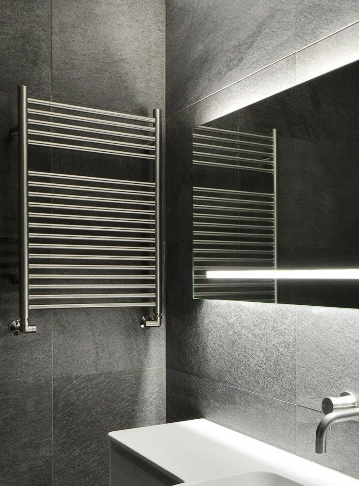 Matching valves will complete the look and also consider the dual-fuel setup for drying towels through the summer months.