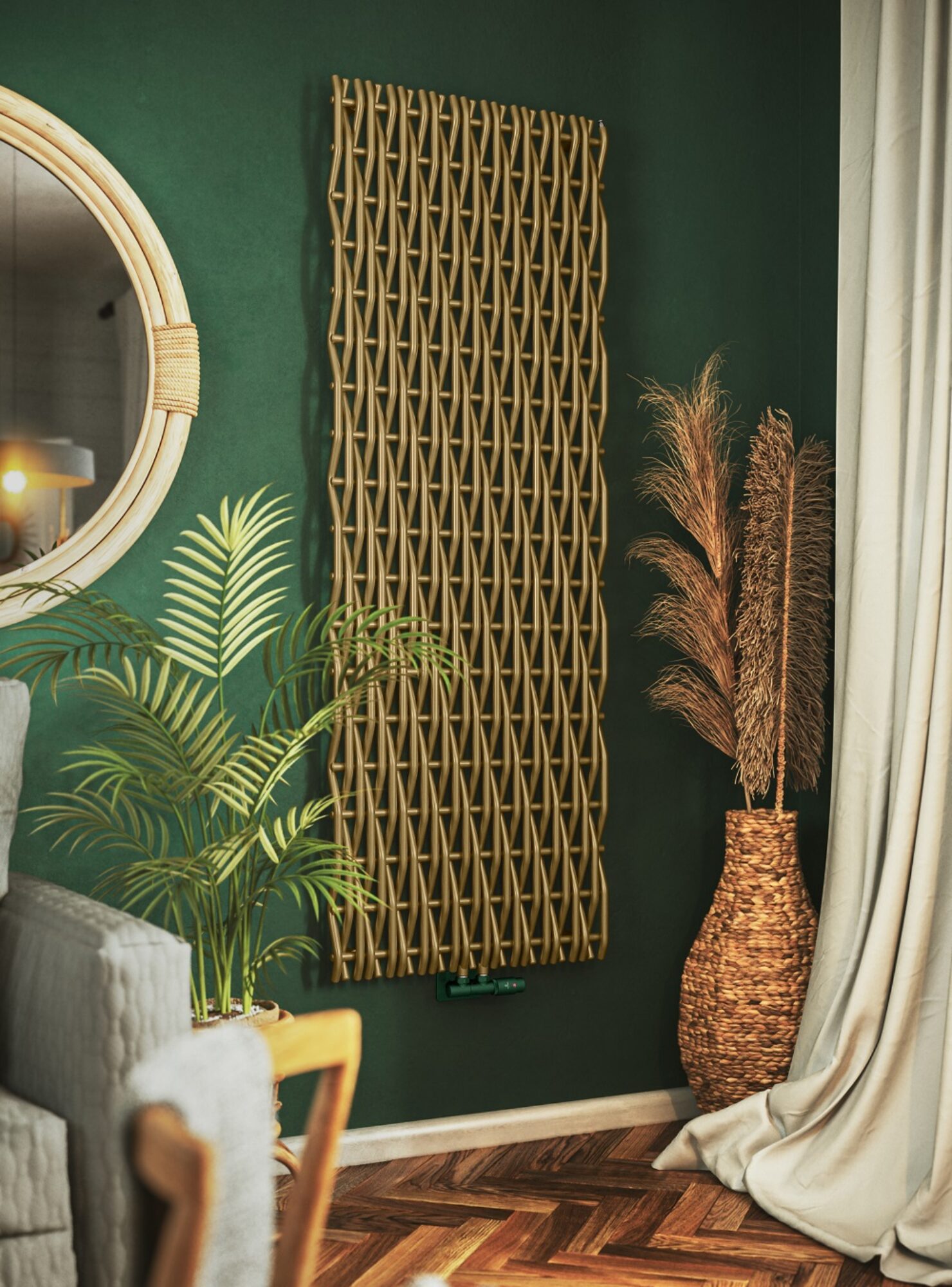 This cleverly conceived, decorative radiator takes its inspiration from the interlacing characteristics of handmade wicker baskets and mats. The result is a visually stimulating piece of wall art which doubles up superbly as a significant heat source.